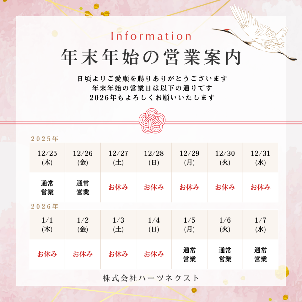 新年は、2026年1月5日(月)より通常営業させていただきます。